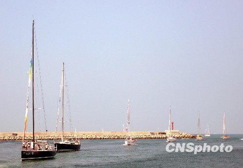图:首届海峡杯参赛帆船驶入台南安平港(2)