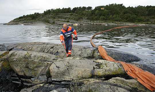 图:一油轮在挪威南部海域触礁 部分原油泄漏(3)