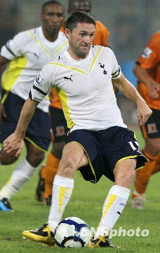 图为热刺队球星罗比·基恩射门。中新社发 任晨鸣 摄