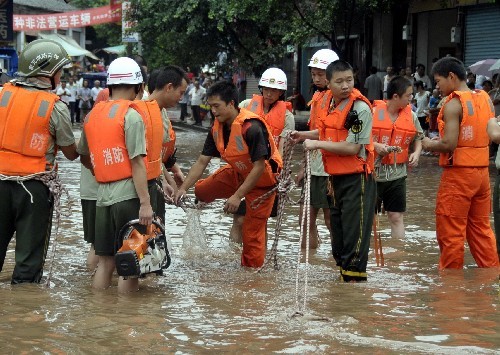 图:四川南充暴雨 水漫桥面冲毁护栏(2)