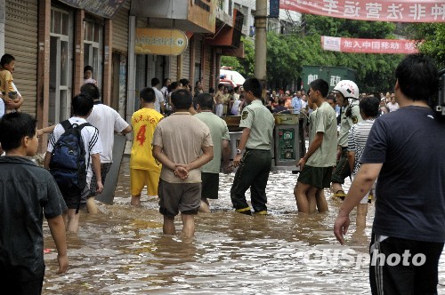 图:四川南充暴雨 水漫桥面冲毁护栏(4)