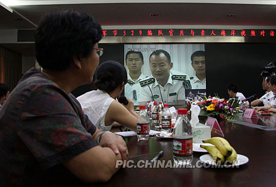 八一建军节来临之际,远赴索马里海域执行中国海军护航编队护航任务第二编队与第三编队官兵,通过卫星电话,面对面地与后方的亲属们进行了爱意浓浓的越洋视频电话。护航官兵们与后方家属们分别介绍了各自情况,并把最真诚的节日祝福传递给了远在大洋彼岸的官兵。亲人的祝福,深深地滋润着官兵的心田,成为了官兵排解寂寞的“心灵鸡汤”。