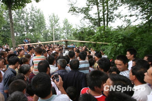 图:农民自制直升机试飞 万人争睹风采(2)