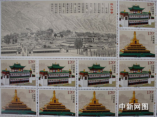8月2日,中国邮政集团公司发行《拉卜楞寺》特种邮票,一套两枚,邮票主图第一图为“大经堂”,第二图为“贡唐宝塔”,两枚连票,由中国著名邮票设计家姜伟杰设计。拉卜楞寺位于甘肃省甘南藏族自治州夏河县境内,是世界最大藏学学府,是中国著名的藏传佛教格鲁派六大宗主寺之一,今年是拉卜楞寺建寺三百周年。