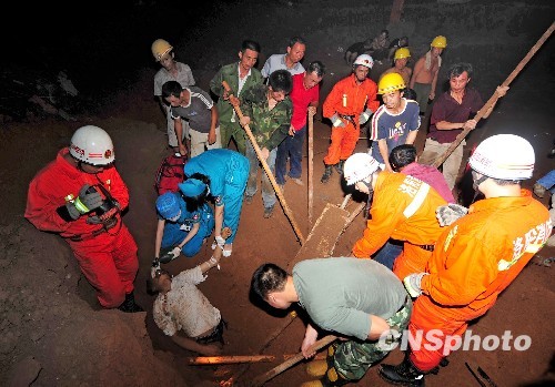 8月3日凌晨3点左右,洛阳市九都路与南昌路一处在建工地防护墙发生塌方,一工人被埋土中,4点左右洛阳市涧西大队119指挥中心接到群众报警后,立即派出2辆救援车,10余名消防官兵赶赴现场进行救援。由于事发现场条件限制为防止伤害到被埋人员,官兵们只能用手刨锹挖,经过十几分钟营救,被困工人被成功救出,被120急救车送往医院抢救。