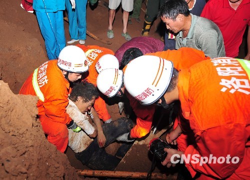 图:洛阳一建筑工地发生塌方 被埋人员被救出(3)