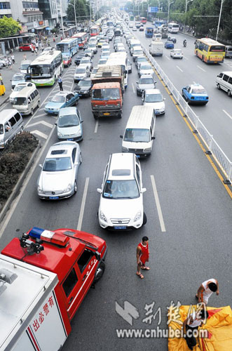 图:为救轻生少年 武汉一主干道堵车2小时(5)