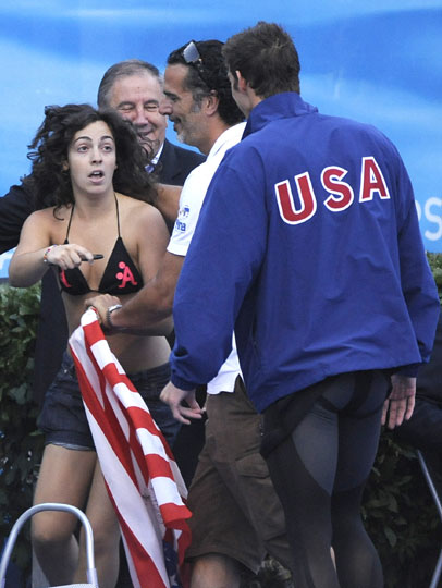 图:女粉丝穿比基尼"偷袭"偶像菲尔普斯(3)