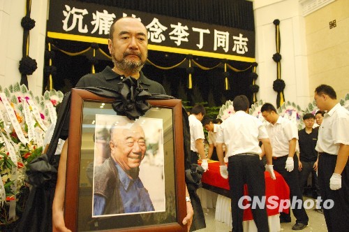 8月4日上午,著名表演艺术家李丁先生的追悼会在北京八宝山殡仪馆举行,李丁先生家属捧起遗像离开灵堂。李丁先生因病医治无效于2009年7月29日在北京逝世,享年82岁。中新社发 侯宇 摄