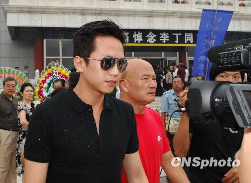 8月4日上午,著名表演艺术家李丁先生的追悼会在北京八宝山殡仪馆举行,著名演员邓超(左)前往送别老前辈。中新社发 侯宇 摄