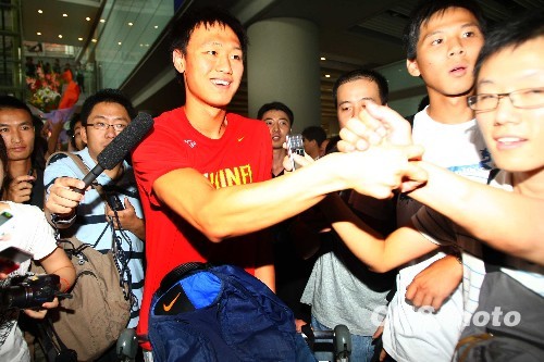 图:中国游泳队载誉抵京 张琳成关注焦点(2)