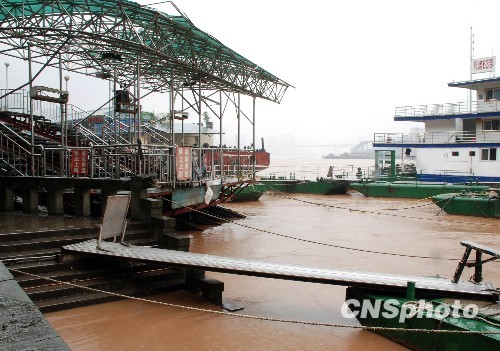 8月4日,重庆朝天门码头缆车轨道被淹没大半,已暂停接送游客。近日重庆遭遇持续强降雨天气,导致长江、嘉陵江两江水位急速上涨。中新社发 郭晋嘉 摄