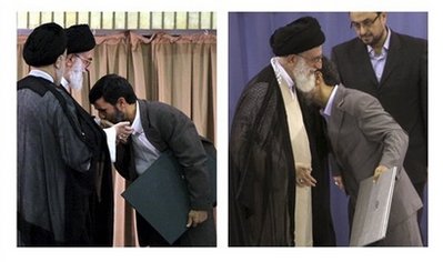 总统委任仪式上内贾德欲吻哈梅内伊遭拒(2)