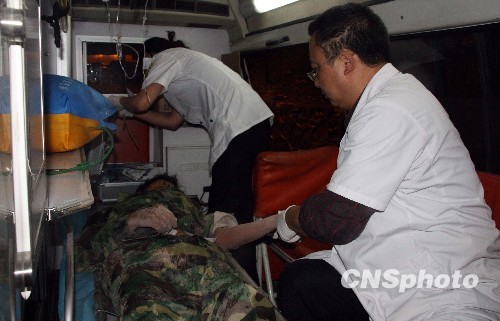 图为医护人员为伤者检查治疗。中新社发 潘立远 摄