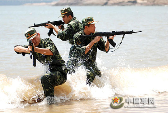 2009年8月3日,武警浙江省台州边防支队特勤分队在温岭龙门海滩举行海岸反恐演练。演练以“恐怖分子”从海上秘密潜入为作战背景,边防特勤官兵开展了武装拦截、山地搜捕等反恐课目演练,以提高部队在沿海地区反恐作战能力。