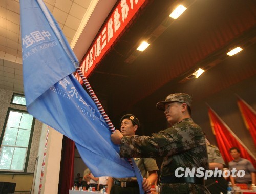 中国第三批赴苏丹达尔富尔维和大队举行授旗仪式。中新社发 王中举 摄