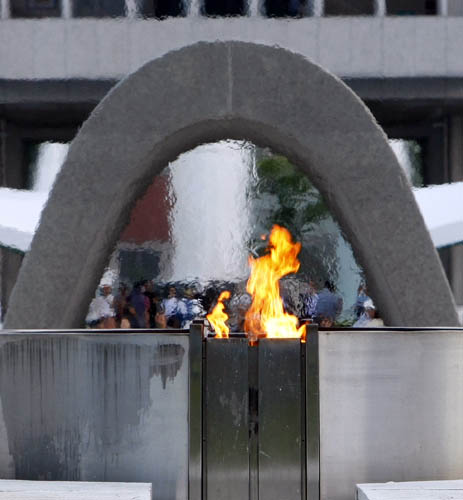 8月4日,日本广岛和平纪念公园,人们来到原子弹爆炸受害者纪念碑前祈祷。今年是日本广岛遭受原子弹轰炸64周年,日本各界人士在广岛举行各种纪念活动,悼念原子弹爆炸死难者,祈祷世界和平。