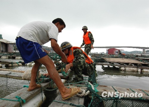 图:浙江军民加固渔排迎战“莫拉克”(2)