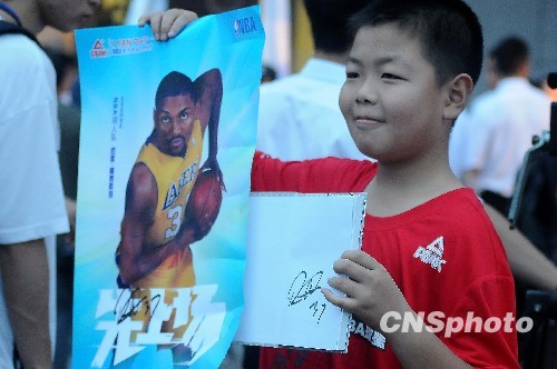 图为NBA大牌球星阿泰斯特造访杭州,受球迷追捧。