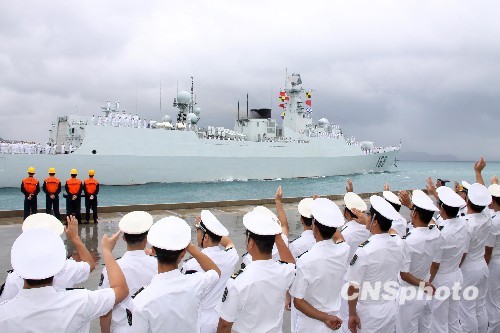 8月7日上午,中国海军“广州”号导弹驱逐舰离开三亚某军港,开始对文莱和印度尼西亚共和国进行友好访问。此次执行出访任务的“广州”舰,是中国自行研制和建造的第三代导弹驱逐舰,满载排水量5850多吨,具有较强的防空、反舰、反潜作战和电子对抗能力,是中国海军新型主战舰艇的代表。中新社发 李章龙 摄