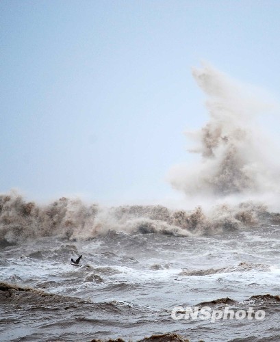 "莫拉克"逼近 温州洞头海面巨浪滔天(4)