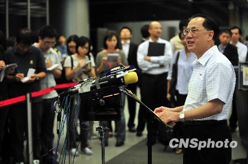八月八日,香港特区行政长官曾荫权出席禁毒家长教育讲座时,曾荫权表示校园验毒计划不可再延迟。中新社发 谭达明 摄