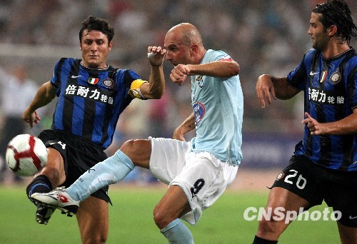 8月8日晚,北京奥运会开幕一周年之际,2009意大利超级杯在北京奥运会主体育场“鸟巢”上演,最终,蓝鹰拉齐奥队以2:1击败实力强大的意甲冠军国际米兰队,在“鸟巢”捧起2009意大利超级杯。中新社发 任晨鸣 摄