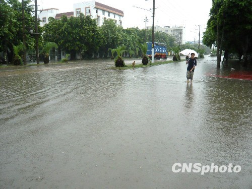 8月9日,今年第8号台风“莫拉克”带来强降雨,致使水淹福建省首家民办投资区福州福兴投资区。当天下午16时20分,“莫拉克”在福建省霞浦县北壁乡沿海登陆,并继续向北偏西方向移动。中新社发 郑晓冲 摄