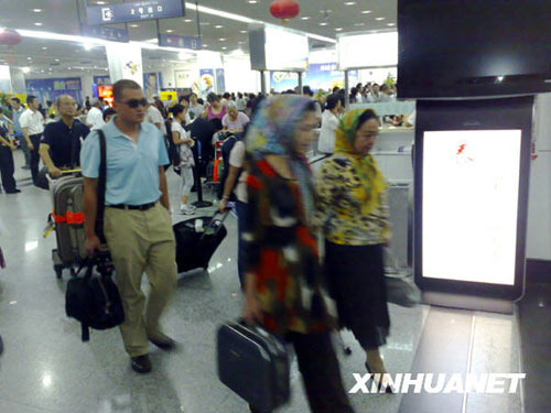 8月10日凌晨,旅客从乌鲁木齐地窝堡国际机场候机厅走出。沙达提 摄