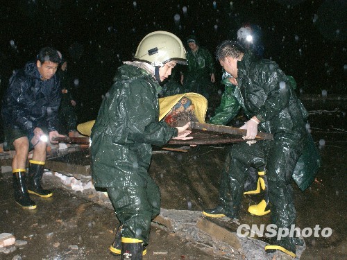 由于受第八号台风“莫拉克”影响,8月9日23时35分许,福建省宁德市福鼎市管阳镇金钗溪村发生一起山体塌方掩埋民房事故,造成3名人员被困。接到报警后,宁德市消防支队政委张文春率2辆消防车11名官兵冒雨赶赴事故现场。经过近2小时的紧急救援,消防官兵成功救出3名被困人员。