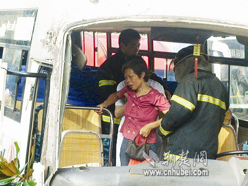 江汉消防中队官兵、交警和急救人员相继赶到。消防战士迅速对车门进行破拆,有序疏散乘客,又将一位惊吓过度的婆婆背上救护车。据了解,事故共造成3人轻伤,事故原因正在调查中。