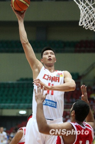 8月10日,2009男篮亚锦赛在天津举行,进入复赛的中国队82-59胜阿联酋队。中新社发 张宇 摄