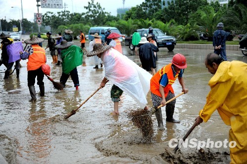 8月10日开始,福州市政府组织人员上路进行清淤和消毒,目前大部分水淹路段基本恢复畅通。8月9日,强台风“莫拉克”肆虐后,福州不少地段积水,汪洋一片,给行人和车辆通行带来极大不便。