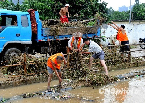 图:“莫拉克”过后 福州街头清淤忙(2)