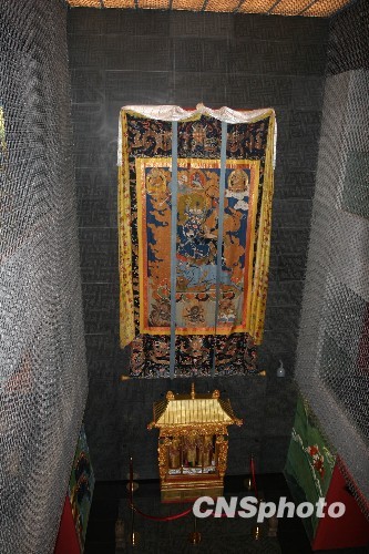 图为珍宝馆里的巨幅唐卡。中新社发 柳俊武 摄