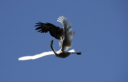 图:天鹅逃避秃鹰捕捉的惊险瞬间(3)
