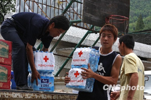8月11日,记者随市红十字会一起,分赴奉化和鄞州灾区,走近受灾民众,为他们送上物资和食品。“莫拉克”带来的巨大山洪,摧毁了山区许多村民的家园。连日来,已经陆陆续续有一些热心市民到红十字会捐款,为受灾村民献上一点心意。中新社发 何蒋勇 摄