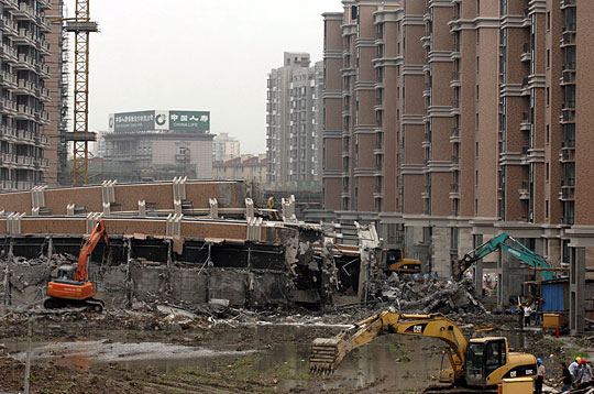图:上海倒楼拆除工作重新开始(3)