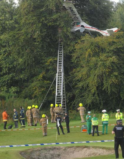 小型飞机撞上大树 机身被卡动弹不得(2)