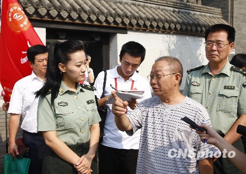 图为吴绍鉴向总政歌舞团歌手谭晶介绍当年情况。中新社发 杜洋 摄