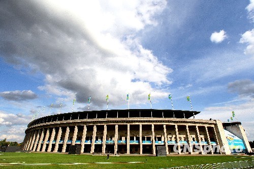经过装饰的老体育场将于8月15日至23日举行第12届国际田径联合会世界田径锦标赛。中新社发 任晨鸣 摄