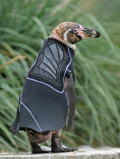动物园企鹅穿上“泳衣” 避免阳光灼伤