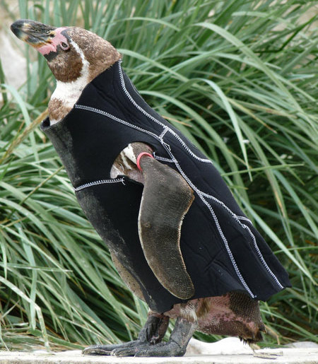 动物园企鹅穿上“泳衣” 避免阳光灼伤