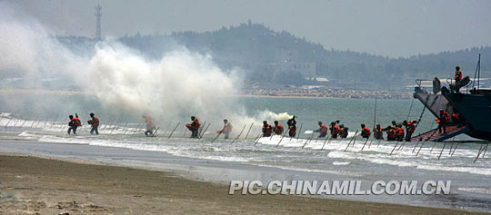 红军刚到作战区域就遭蓝军火力打击,部分人员装备受损。张军荣 摄