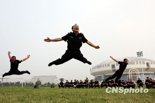 公安特警正在进行前扑训练。中新社发 万善朝 摄