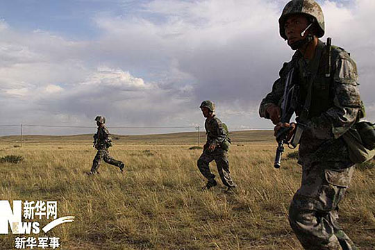 8月13日,"跨越-2009"实兵检验性演习进入第4天。北路摩托化机动部队行至内蒙古锡林郭勒大草原时,因"前方道路被毁坏,附近没有绕行道路",分队人员"被迫"从草原上迂回徒步奔袭6公里到达指定地域,组织抢修"被毁"道路以保证部队顺利通过。