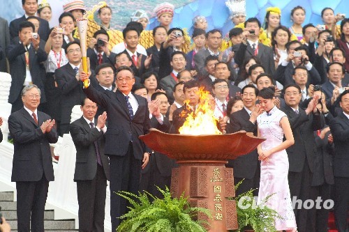 图:第十一届全运会火炬传递活动点火起跑(2)