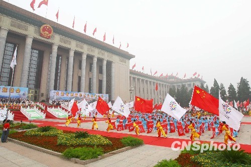 图:第十一届全运会火炬传递活动点火起跑(7)