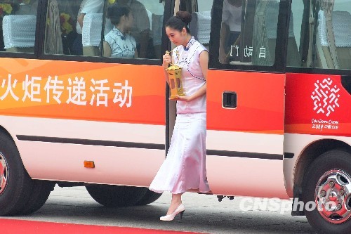 图:第十一届全运会火炬传递活动点火起跑(8)