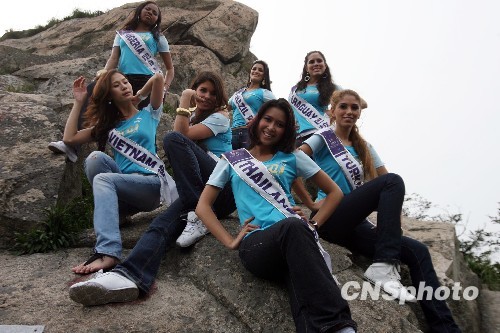 2009国际旅游小姐在河南信阳攀登报晓峰巡游鸡公山旅游景区。中新社发 钱兴强 摄